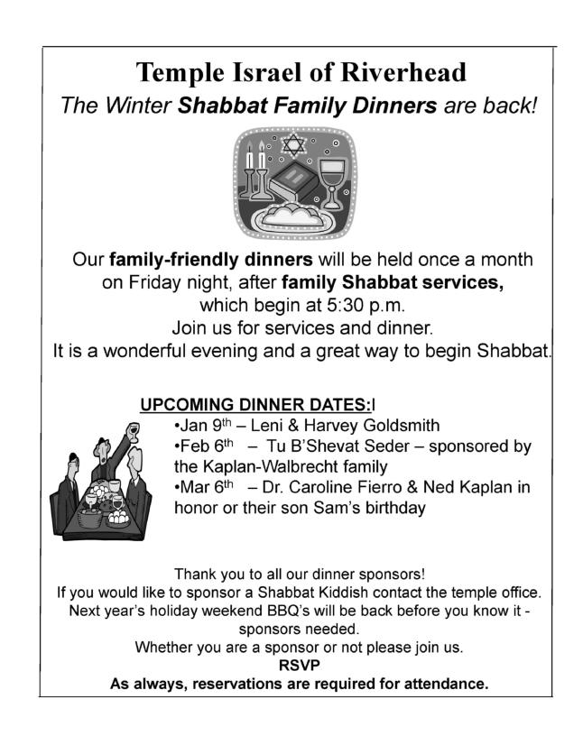 490 Northville Turnpike P.O. Box 1531 Riverhead, NY 11901 631-727-3191 TempleIsraelRH@optonline.net