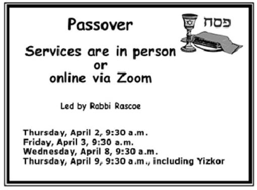 Click here for Passover Seder information